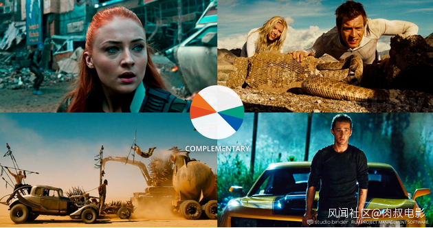 這樣的選擇會讓人視覺上看起來很舒服。只有在一些特殊情況下,我們才會選擇色盤上位置兩側的互補色,為了增加戲劇張力衝突。