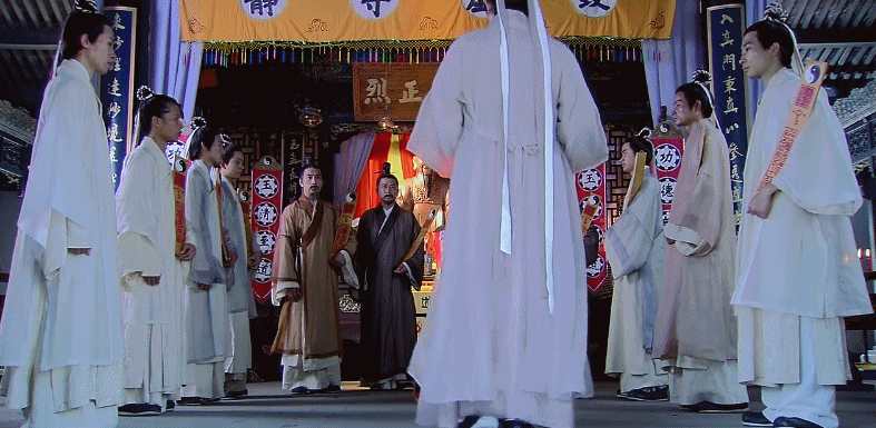 至此留芳心死,道袍再套白紗,袖口也由窄變寬。