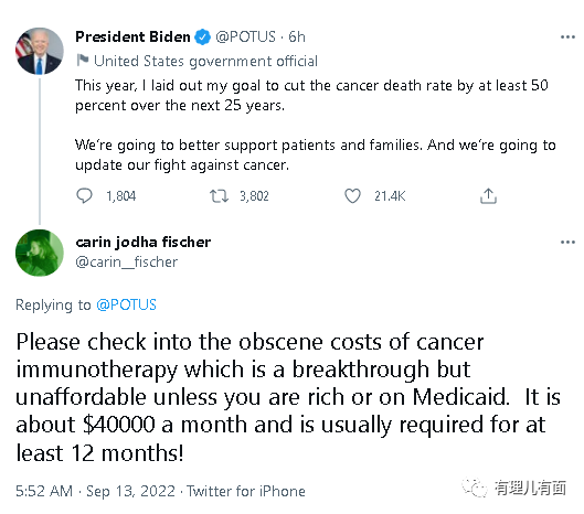 於是,9月13日,拜登笑眯眯的提出了提高美國人預期壽命的“癌症登月計劃”