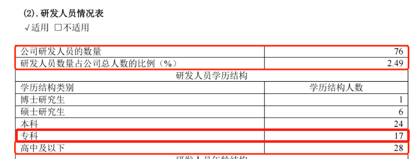 2018年研發支出不到1400萬,如今公司的研發人員總共就76,只佔公司員工2.49%,更重要的是,高中及以下就有28人。