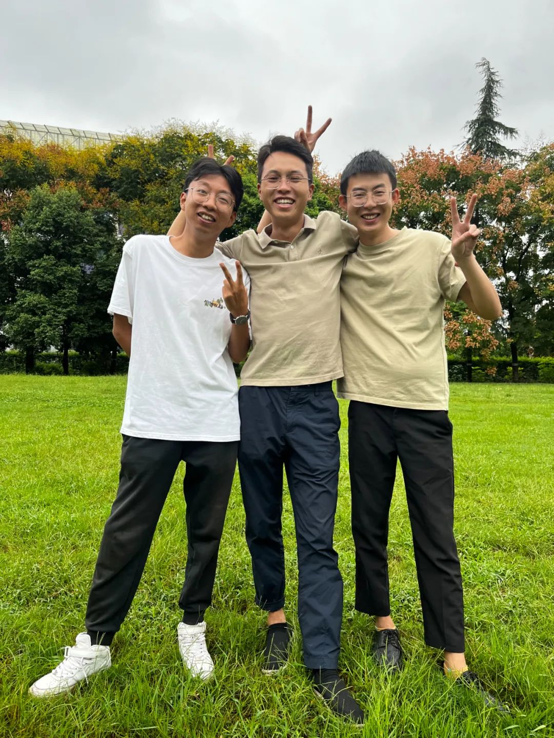 王傑(中間)與他的兄弟楊洌(左)、陳磊(右)