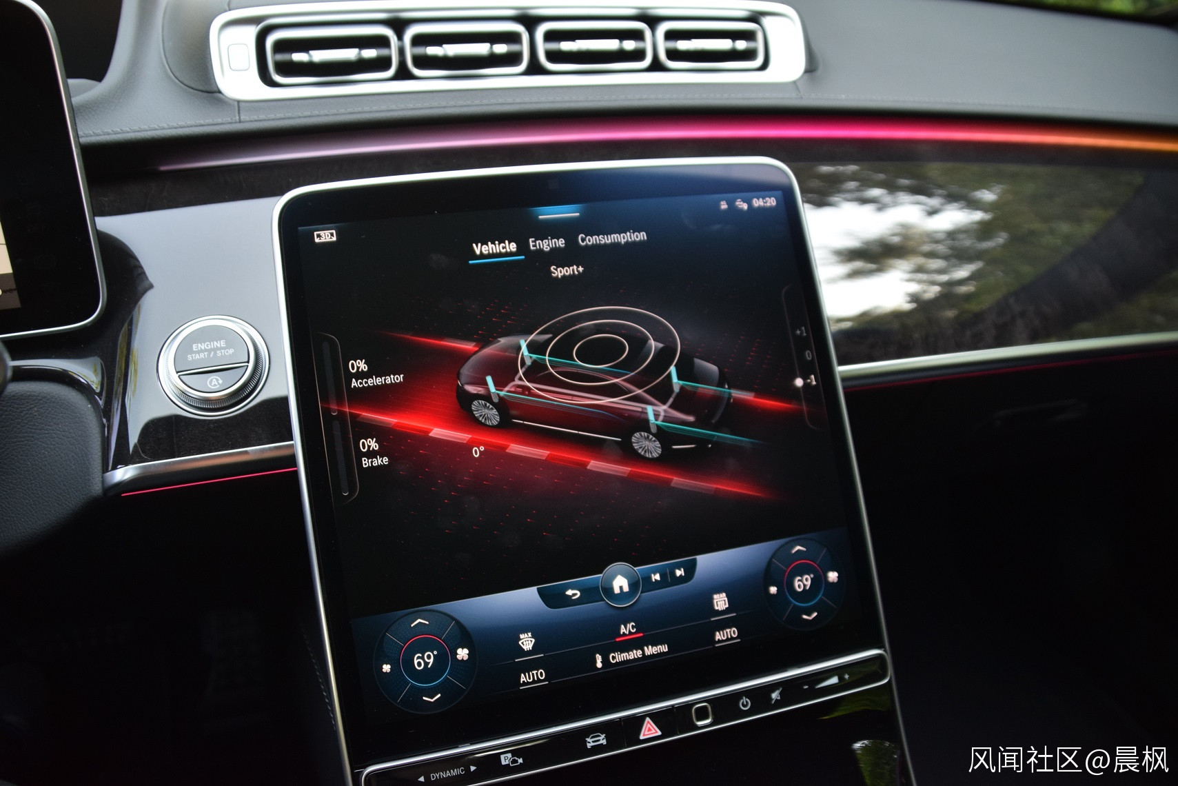 奔馳S550換了一個方向,不是在中控台上放一個縱向的大屏,而是改成橫向