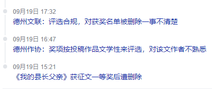 9月18日,德州市作家協會公佈了一則獲獎名單。