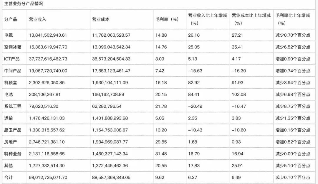▲2021年長虹產品營收情況