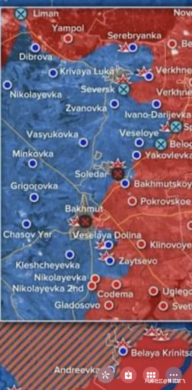 2. 哈爾科夫方向. 目前衞星地圖證實烏軍和俄軍都在大規模的在該地區集結。看起來奧斯基爾河沿河地帶,紅利曼和洛羅瓦等地的爭奪將繼續。楊皮爾目前牢牢在俄軍手裏。其他地區差異不大。俄軍表示再次防守住了紅利曼。
