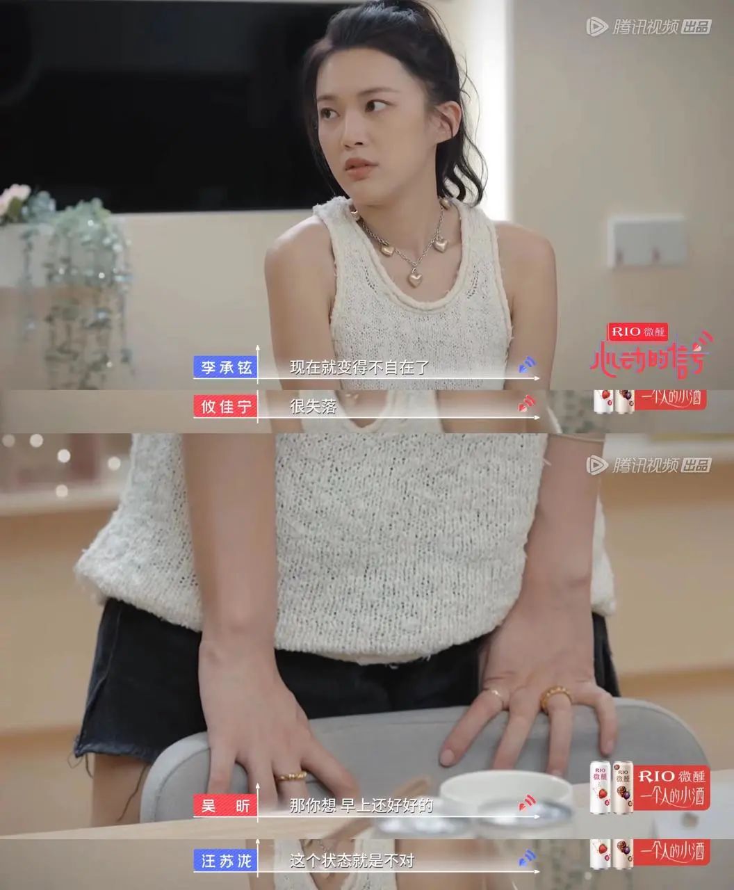 在心動小屋裏,明明是7個人一起吃飯,但唯獨他們兩個像是一起結伴而來的。就連微妙的拍照環節,也只有李聶和薛喆陽兩個人是彼此互拍的 ,張根源一度提出要和李聶一起合拍,卻被後者果斷拒絕。李聶甚至堅定地給薛喆陽單獨帶了他愛吃的榴蓮當做夜宵,卻對張根源想要幫她系圍裙的舉動禮貌地保持了距離。