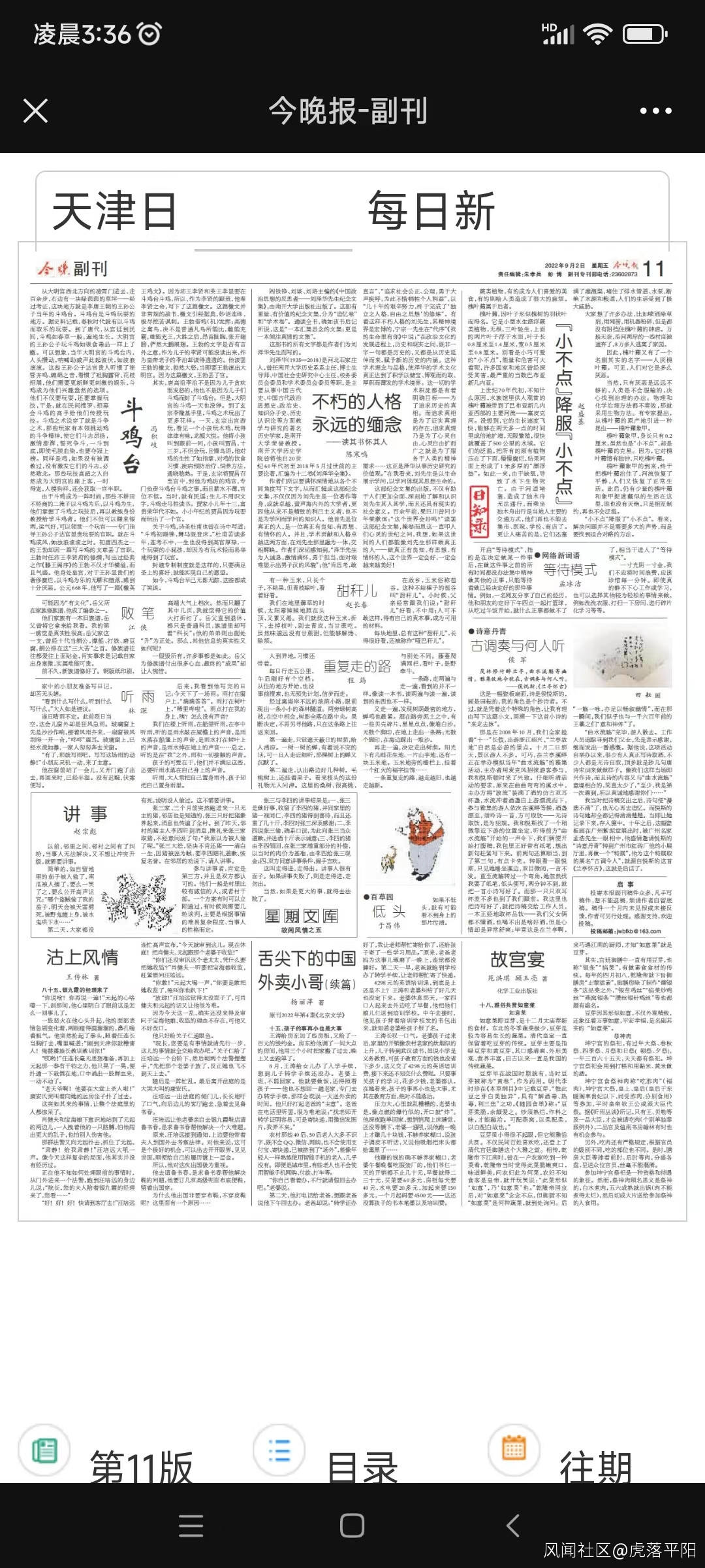 趙先生的《山河故人》裏的很多文章在《今晚報》的副刊上先睹為快過,比如《講事》《點心》《煤灰》《起屋》《輩分》《蠓蟲揮》《磚瓦窯》《路廊》……收到贈書後細細品味,感到其文章與魯迅的敍事風格非常接近,比如藴含父子情深的《游泳》。