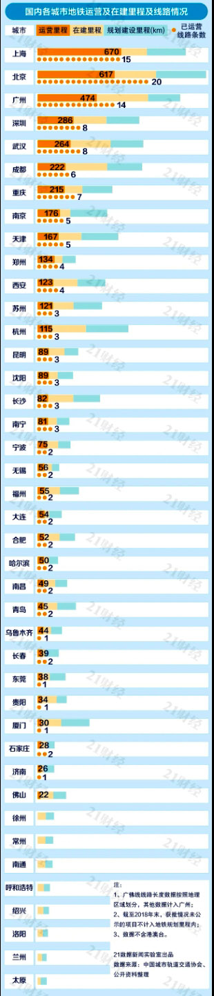 廣州、成都的城市軌道交通里程都超過550公里,位居第二檔。