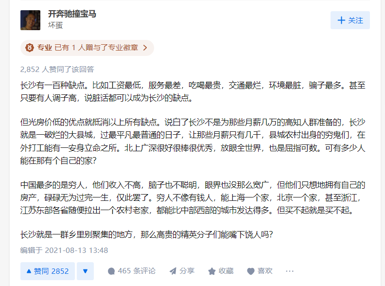 長沙有一百種缺點。比如工資最低,服務最差,吃喝最貴,交通最爛,環境最髒,騙子最多。甚至只要有人調子高,説髒話都可以成為長沙的缺點。