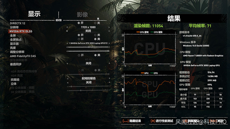 同樣1080P分辨率下的《古墓麗影:暗影》,高預設下平均幀率為71。