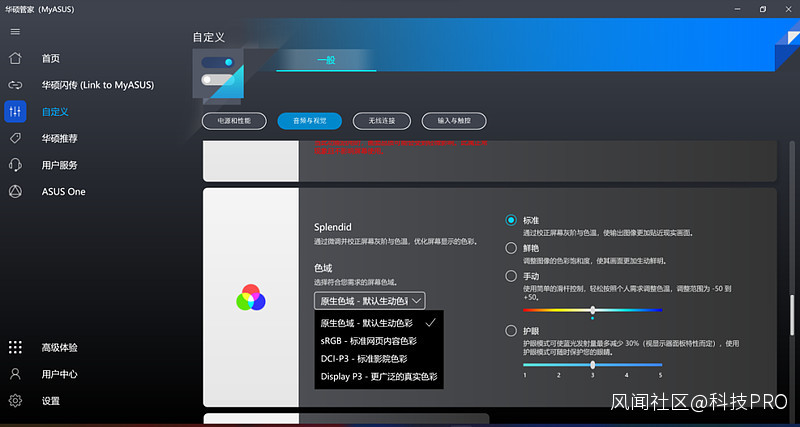 通過MyASUS軟件,我們可以進行色域的切換,由此可見,屏幕的色域覆蓋範圍也是非常的廣。