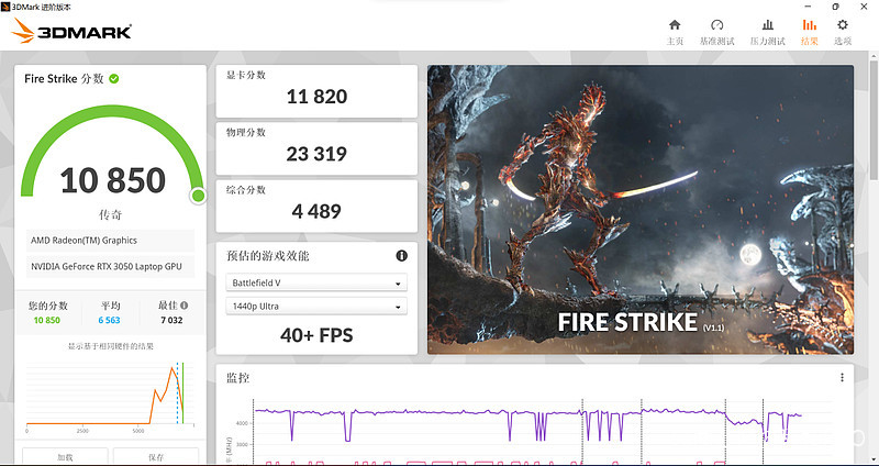圖形處理器能力的測試,我們還是交給3DMark,Time Spy和Fire Strike的實測成績如上。大概是2K分辨率下3A大作40、50幀的水平,已經很接近遊戲本的性能。
