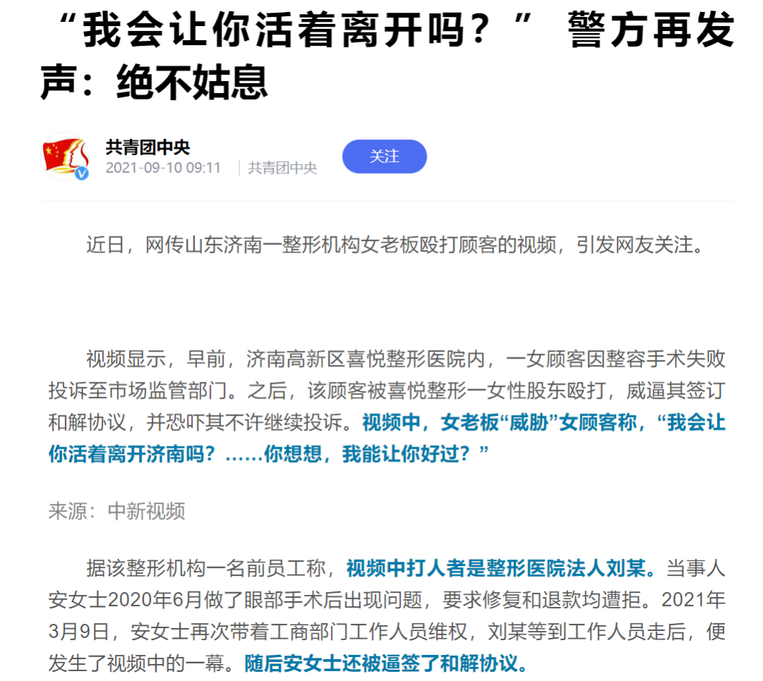 不過人與人之間最怕的就是比較,放到醫美這圈子裏看,於會長的手段已經可以説很“文明”了。