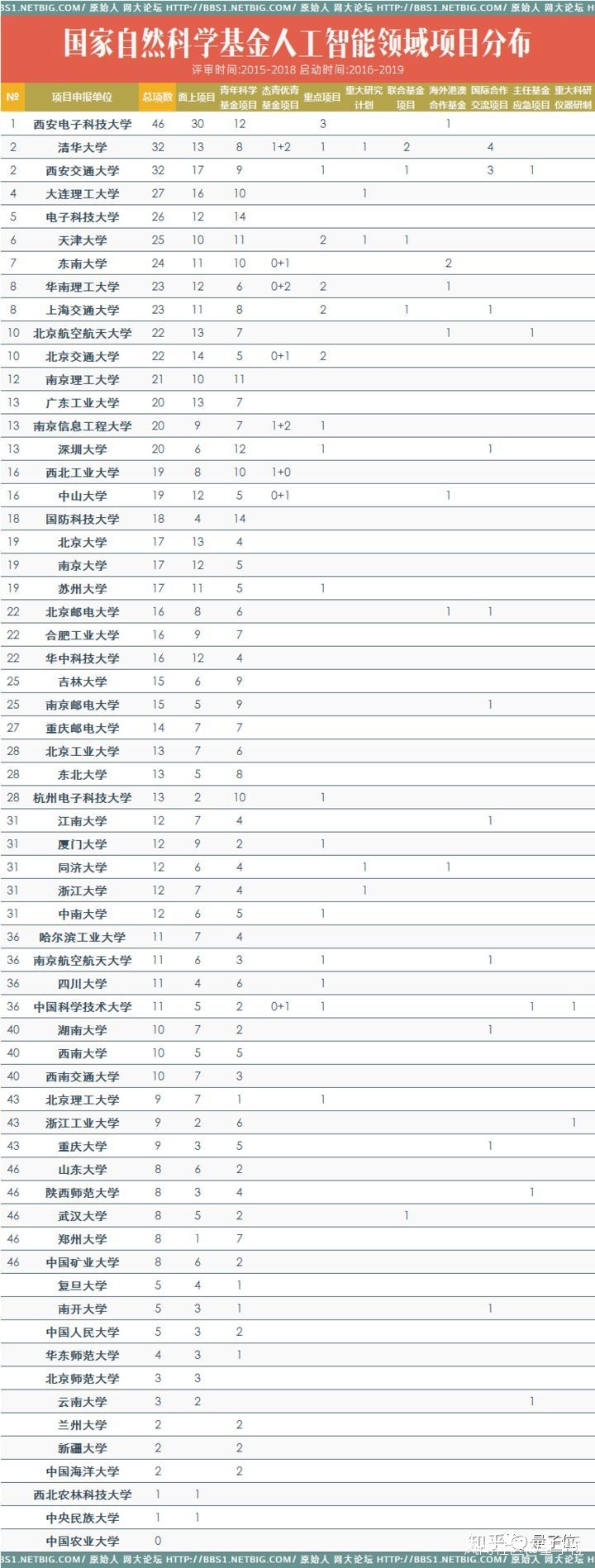 又例如,根據知乎@newwinds引用的網大論壇原始人資料,在人工智能領域,南京信息工程大學申報了20項國家自然科學基金項目,面上9項,其中1項是重點項目。