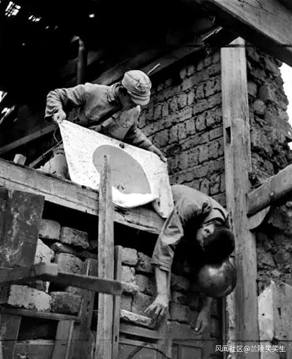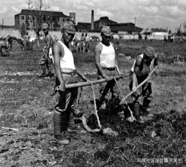 1945年9月29日,上海附近無人看守的日軍戰俘營裏,等待船隻回國的日本戰俘在勞動。