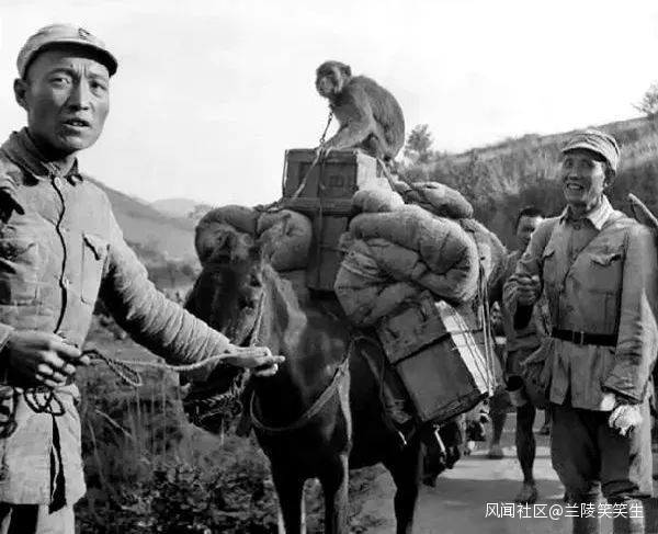 1944年7月10日,士兵們帶上他們的寵物猴,放在為前線運輸武器給養的騾馬背上。