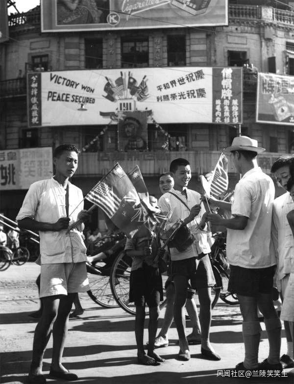 1945年9月5日,上海,中國人在購買小旗慶祝抗戰勝利。