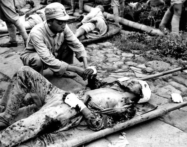 1944年10月4日,血腥的騰衝之戰,躺在擔架上的中國傷兵。