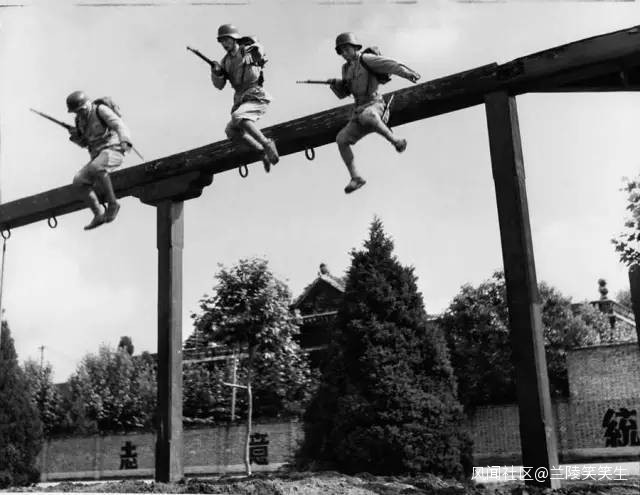 成都中央軍校——中國的 “西點” 。學員們跳下一座高橋。