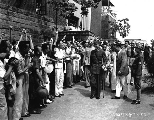 1945年,日本投降後,蔣介石在重慶街頭受到人民夾道歡迎。
