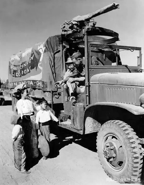 1945年2月2日,中美車隊的卡車司機在駛出密支那時,向一位緬甸母親和她的孩子致敬。