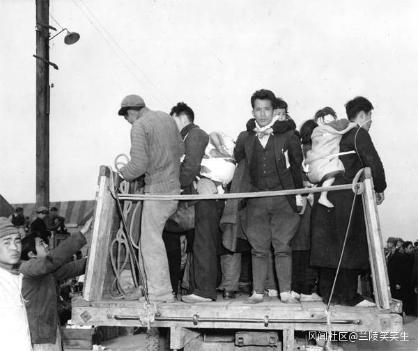 1946年1月23日,被營救的日本遣返人員。從日本海軍ENOSHIMA丸上被營救的日本遣返人員。