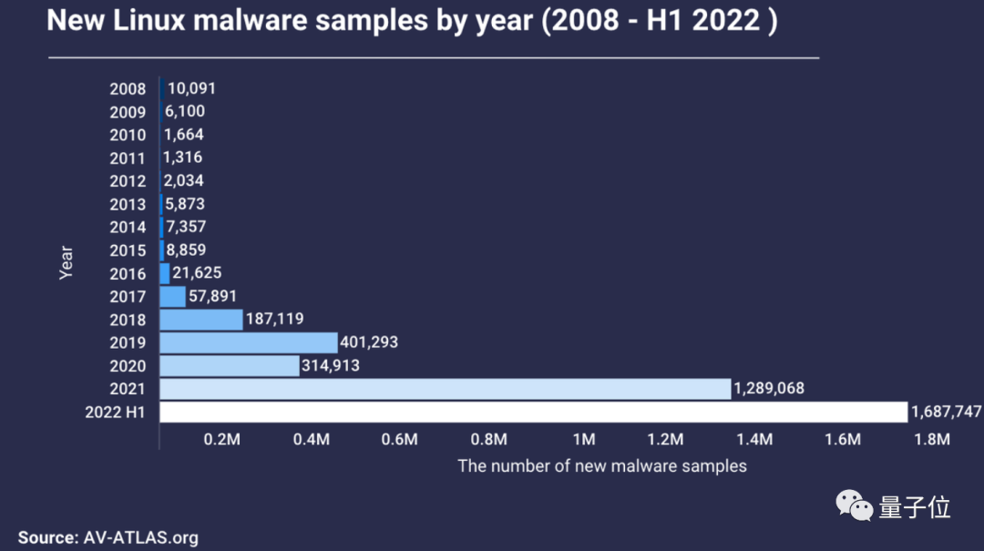 根據AV-ATLAS團隊提供的數據,新的Linux惡意軟件的數量在2022年上半年達到了歷史新高,發現了近170萬個。