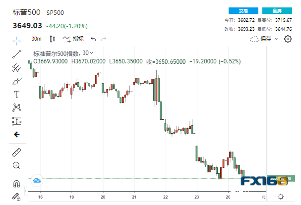 交易員正在關注標普500指數是否跌破熊市低點。標普500指數今年6月的最低收盤點位為3666.77點。該股指上週五收於3693.23點。如該指數跌至這一水平下方可能會引發更多的市場拋售。