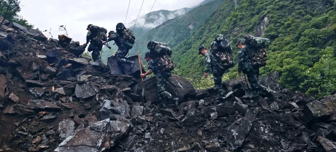 與此同時,山上還不停地滾下大大小小的石頭,大的足足有好幾立方米,羅永心一橫,踩着垮塌的山石就往上衝,誰知這人一用勁兒,腳下的石頭更是亂飛,為了安全,羅永只能暫時退了回去。