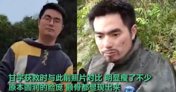 十幾天下來,鞋子、褲子都爛了,渾身遍佈擦傷,在猛虎崗的山上,甘宇再也走不動了,也沒辦法下山,幸運的是已經躺了兩三天的他遇上了倪太高。