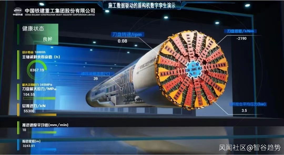 原來,在施工過程當中,鐵建重工的“數字孿生技術”不僅可以收集數據、實時回傳,讓研發人員利用這些數據,優化下一代產品設計。還能根據各項數據,進行分析、預警,甚至自主決策,讓盾構機的運行變得更加安全、智能、高效。