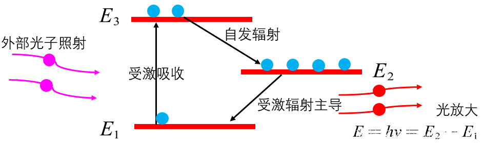 那麼如何使受激輻射過程更有優勢呢?答案是:只要保證處在高能級的電子數目比處在低能級的電子數目多就可以了,這就是粒子數反轉[3]。