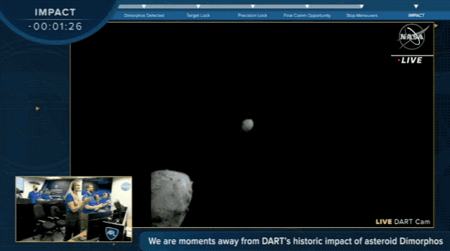 最後,隨着“3、2、1”的倒數,DART成功撞擊孿小星!