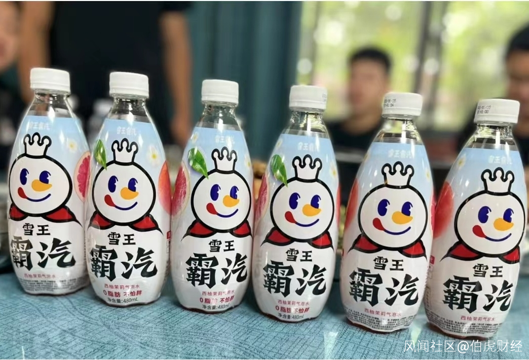 目前,“雪王霸汽”氣泡水新品已於四川等地悄然上市。該系列包含“蜜桃烏龍”和“西柚茉莉”兩種口味,瓶底顯示“0脂肪不怕胖”字樣,並打出“真茶真果汁”的口號。