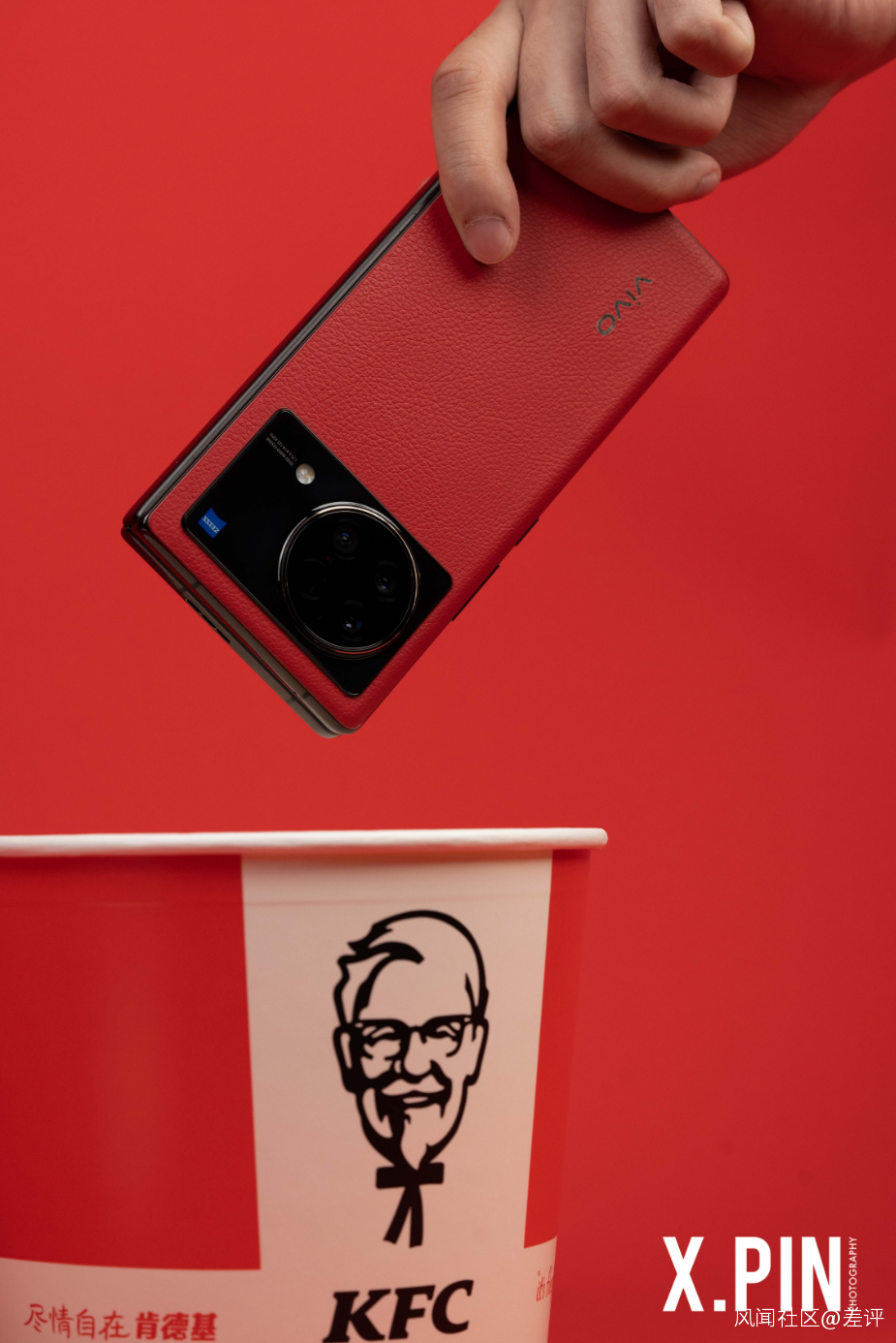 這兩天我看着它的背面,總是會生出一股抽離感:一個是肯德基 vivo 50 的梗,讓這抹紅色有點兒特別。。。