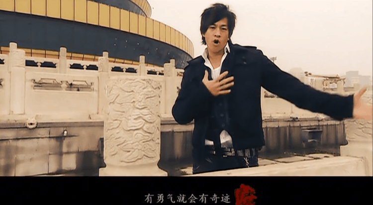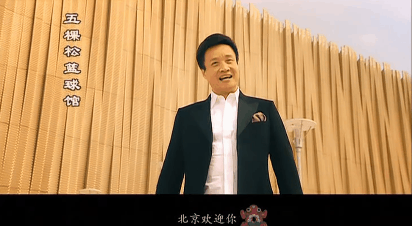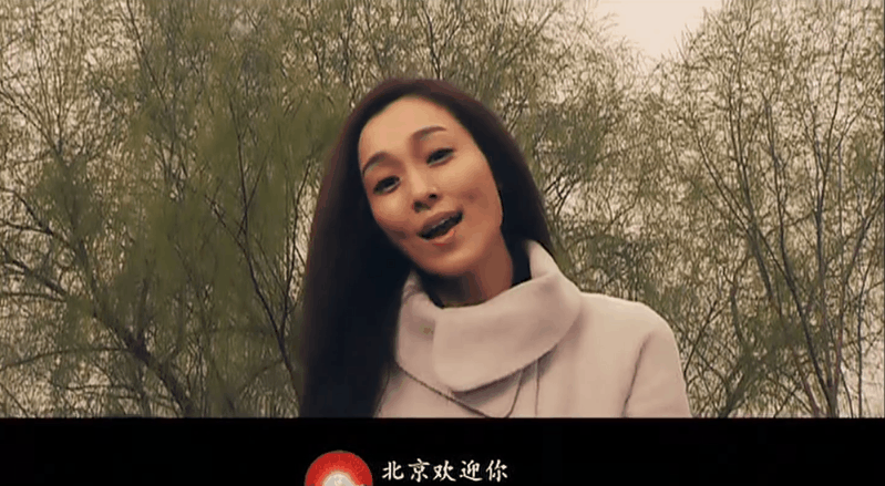 成龍站在八達嶺長城上唱的那一句“北京歡迎你”。
