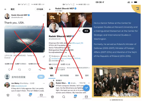 於是,波蘭的一位Sikorski先生,就發了一個推,上面是北溪泄露的畫面,以及,“謝謝你,美國。”幾個字。