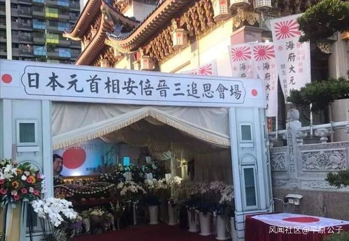 全世界真心給安倍哭喪的鬼地方,只有一個。他們專門為安倍打造追思會,到處掛滿了日本臭名昭著的旭日旗和膏藥旗,還給安倍造了一尊銅像,將安倍晉三的銅像安置在X市最好的一個廟宇裏面……一個老太太甚至哭喪哭到暈倒。殖人大孝,感動太平洋。