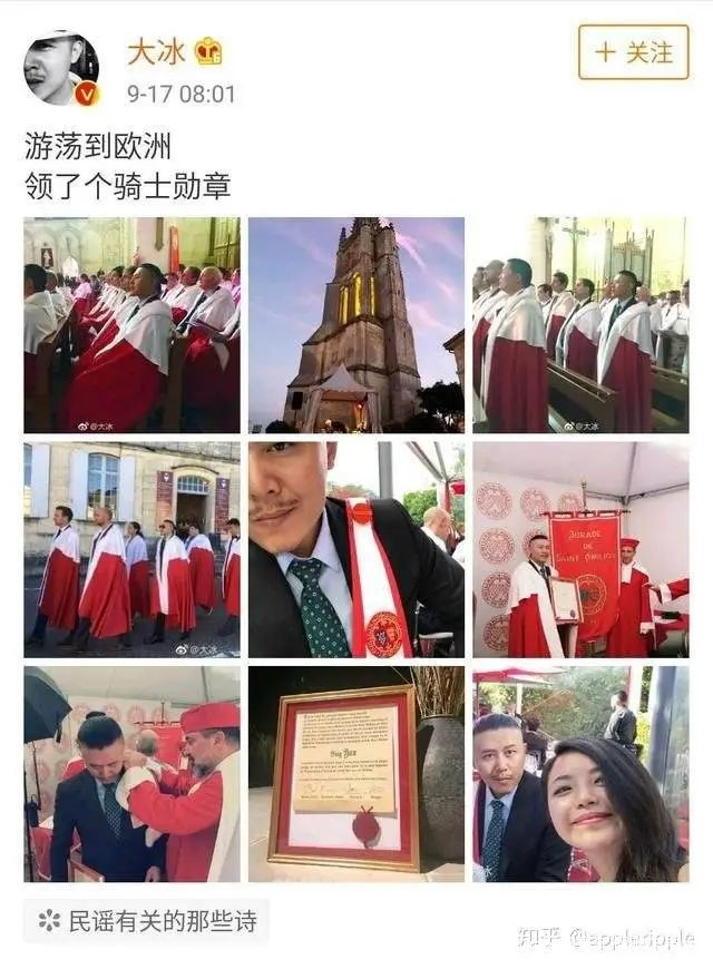 倒是大冰老師,明明知道魯拉德騎士團勳章是山寨,卻還是在微博上委委屈屈:“授勳儀式結束後,木有等到發劍和發馬。”(反正他的讀者應該也無法看破真相)