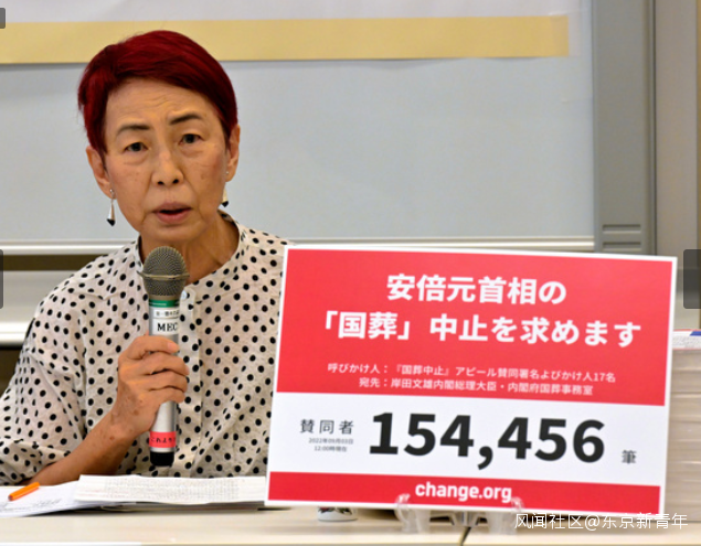 從7月開始,日本網民就開始在請願網站Change.org上收集簽名,其標題是 “我們要求取消前首相安倍的’國葬’"。