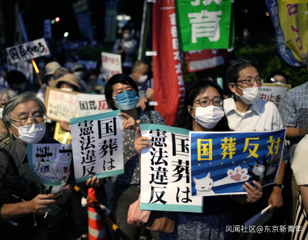 除了這些有有影響力的知名人士公開反對之外,日本普通民眾也走到國會周邊表達對這次國葬的不滿。