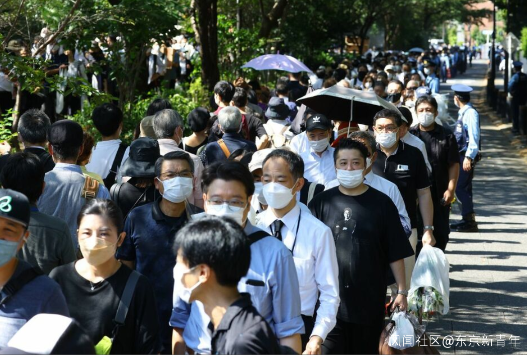 雖然萬般反對,不過昨天在國葬現場卻是另外一番模樣。27日上午,在日本武道館附近的九段坂公園開始了民眾公開獻花活動。一大早,千鳥淵一側的入口處就排起了長隊,預定的時間被提前了約30分鐘。
