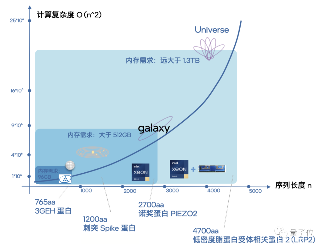 可以看到,當蛋白質序列長度達到4700aa時,此時內存需求就已經大於1.3TB,計算複雜度對於系統來説就相當於**“探索宇宙級別”**了。