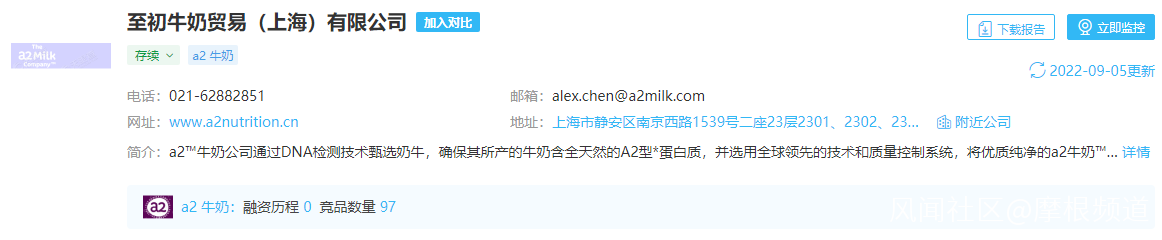 與主流外資品牌所涉及的常規牛奶或奶粉不同,根據天眼查App顯示,a2牛奶旗下產品主打的是含有比常規A1蛋白質更自然親和、更易吸收的A2蛋白質,高端特色奶是a2牛奶的核心競爭力。