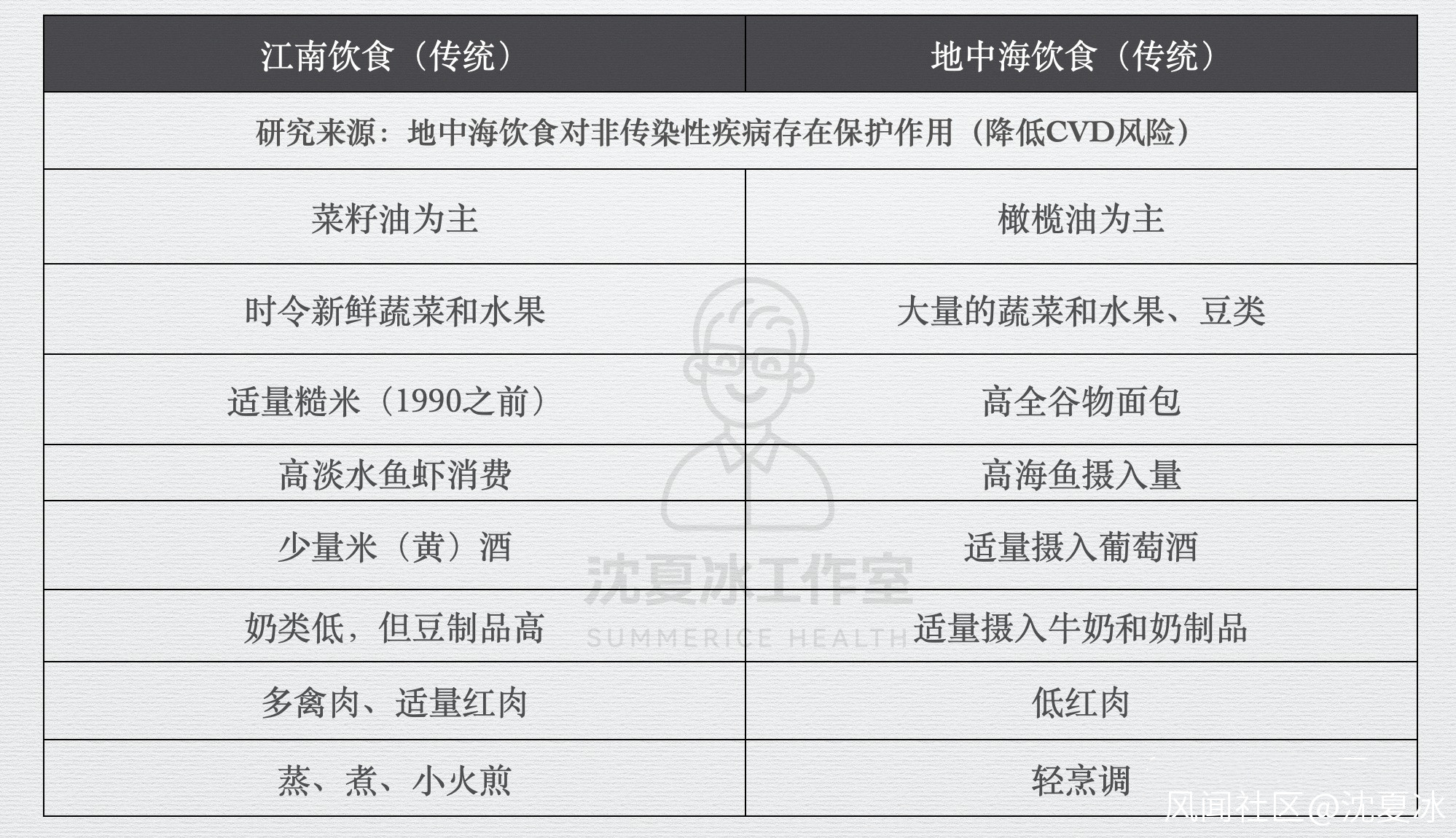 注:我們提到的江南飲食和地中海飲食都是“傳統意義上的健康飲食”,我國和地中海地區近年來都出現了飲食西化的問題,一些好的飲食習慣和食物選擇也在慢慢消失