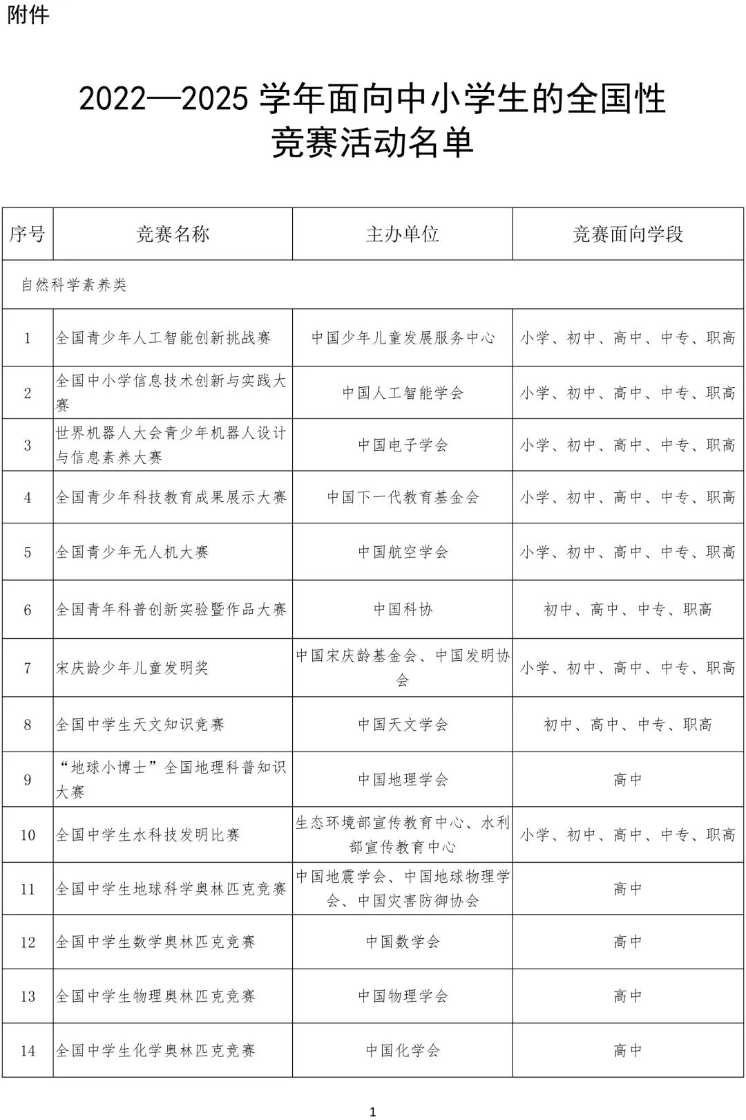 4. 教育部公佈2022-2025學年面向中小學生的全國性競賽活動名單 共44項