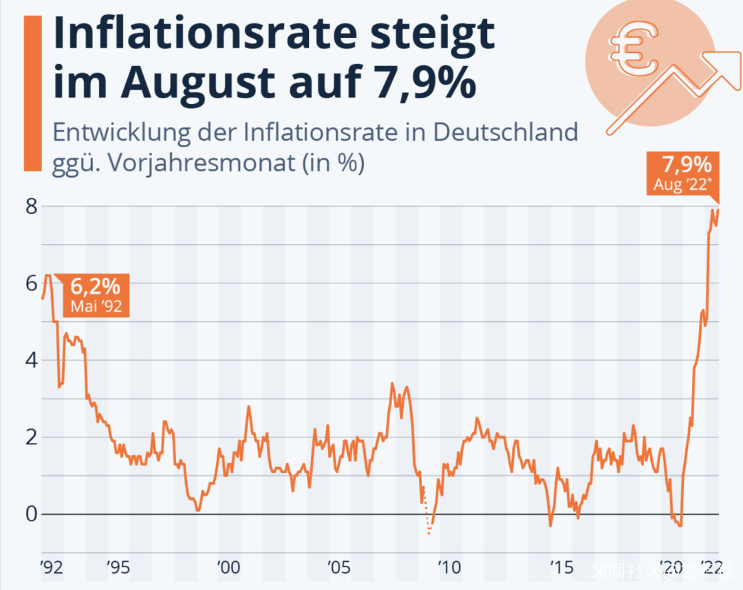 經濟學家認為德國的通貨膨脹率將在很長一段時間內居高不下,甚至在2023年將攀升至9%,而今年則為8%左右。