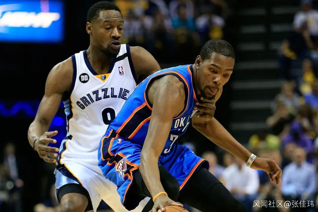 艱難擊敗灰熊的系列賽,杜蘭特場均30分命中率44%。之後過快船時,快船一度試了個詭異的招式:保羅去對位杜蘭特。