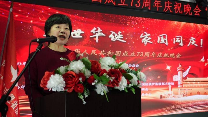 中國駐俄羅斯大使館公使銜參贊劉慶華女士發表熱情洋溢的講話:再過兩天就是祖國73週年華誕,值此海內外兒女共迎國慶之際,我謹轉達張漢暉大使對大家的節日祝賀和深深祝福。新中國成立73週年以來,中國共產黨團結帶領億萬中國人民迎來了從站起來,富起來到強起來的歷史性飛躍。中國的發展建設所取得的巨大成就,離不開每一位情牽桑梓,心繫祖國的海外華僑。總書記曾提到過“華僑一個最重要的特點就是愛國,愛鄉,愛自己的家人,這就是中國人,中國文化,中國人的精神,中國心。”長期以來,廣大旅俄僑胞愛黨愛國,講述中國故事,展現中國形象,弘揚中國文化,為中俄友好貢獻力量。今天在座的各位華僑華人朋友,既是中俄友好合作的親歷者,也是見證者和推動者。