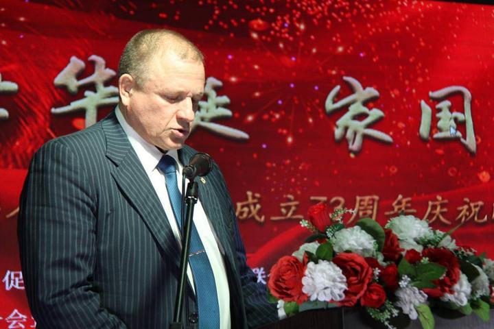莫斯科華僑華人聯合會會長暨莫斯科華星藝術團團長王傳寶在發言中指出:在這慶祝中華人民共和國成立七十三週年和迎接即將召開的黨的二十大這個大喜的日子裏,廣大華僑華人歡欣鼓舞,海外華僑華人衷心祈盼中俄經貿合作跨上新台階,中俄兩國人民世代友好,源遠流長。